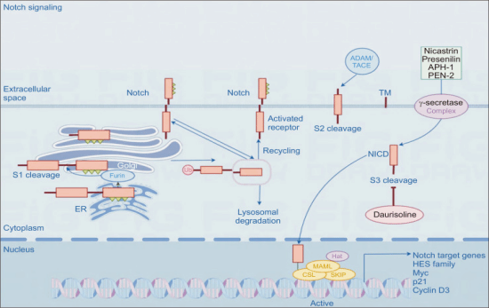 本研究揭示了北豆根碱(daurisoline)通过靶向γ-分泌酶抑制Notch信号通路进而阻断三阴性乳腺癌进展的作用机制:作为一种特异性γ-分泌酶抑制剂,北豆根碱直接作用于Notch受体水解环节,通过降低γ-分泌酶的水解活性减少Notch胞内结构域(NICD)的生成与核转位,从而抑制其介导的下游靶基因转录活化,最终实现对TNBC细胞增殖、迁移及侵袭等多维恶性表型的协同抑制。